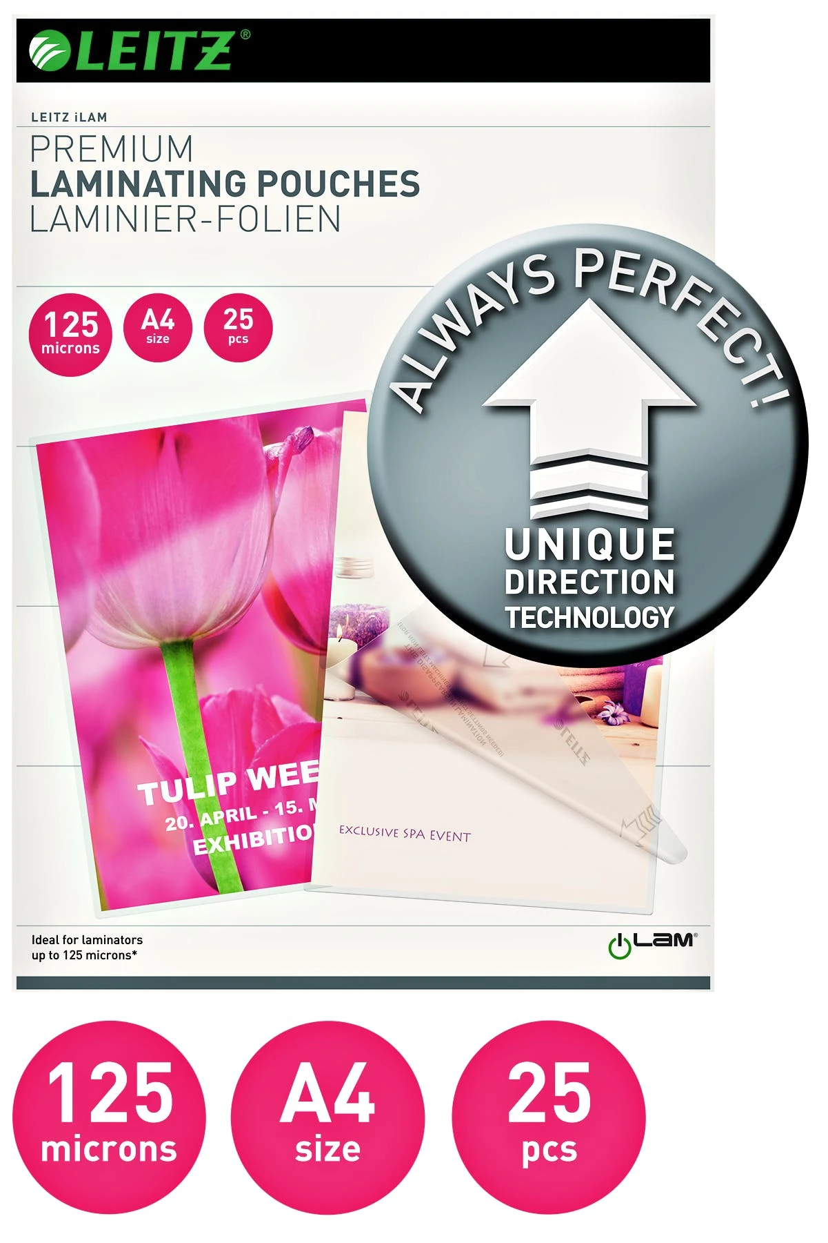 Dauerhafter Schutz von Unterlagen gegen Schmutz, Flüssigkeiten und Feuchtigkeithohe Festigkeit. Einfach zu verstehende Anleitung für staufreies Laminieren. Einfaches Einlegen mit der Unique Direction Technology – die richtungsweisenden Pfeile verschwinden beim Laminieren! Glänzende Oberfläche für eine verbesserte Farbwiedergabe.