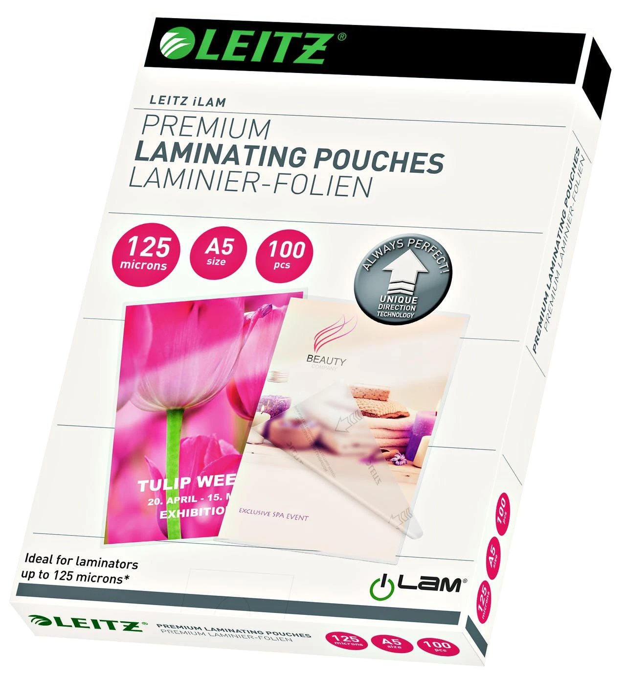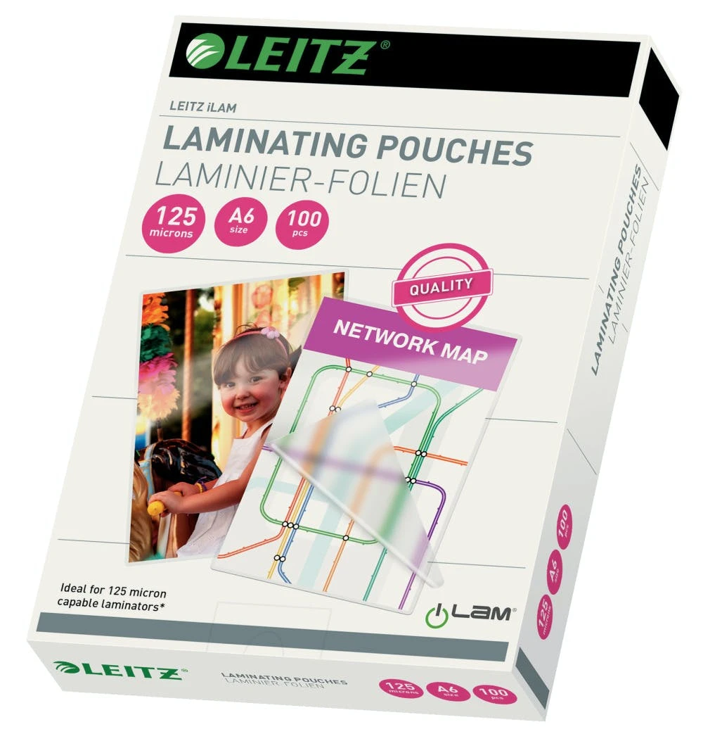 Dauerhafter Schutz von Unterlagen gegen Schmutz, Flüssigkeiten und Feuchtigkeithohe Festigkeit. Einfach zu verstehende Anleitung für staufreies Laminieren. Einfaches Einlegen mit der Unique Direction Technology – die richtungsweisenden Pfeile verschwinden beim Laminieren! Glänzende Oberfläche für eine verbesserte Farbwiedergabe.