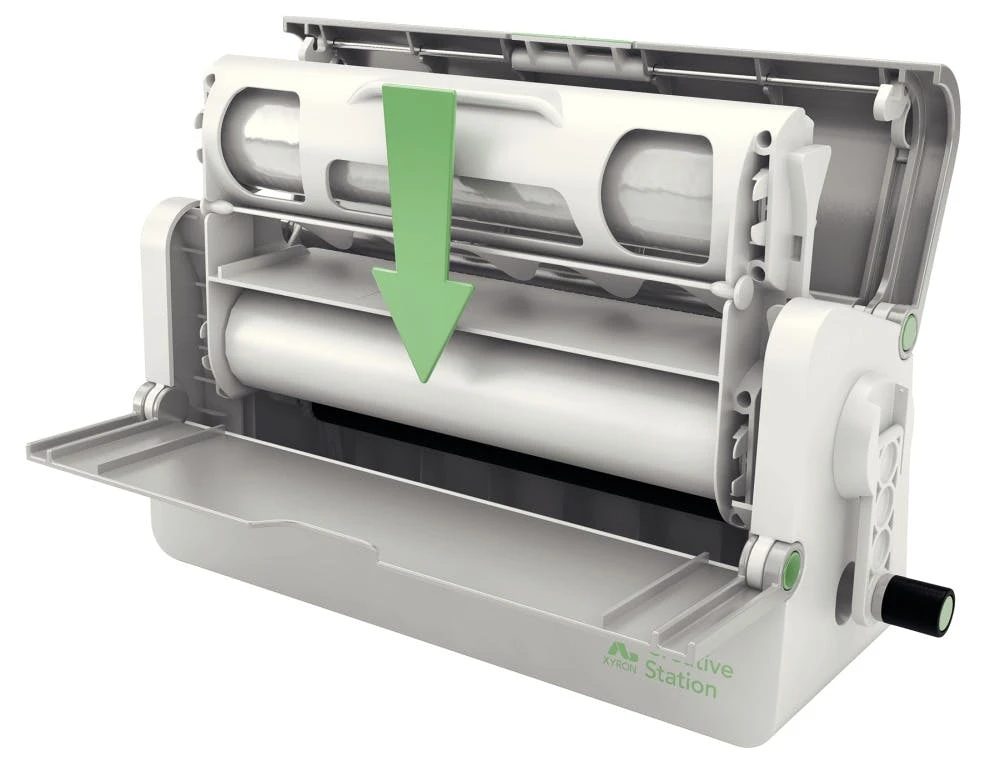 Xyron Creative Station Laminierkassette· Beidseitig laminierend. Patentiertes Kassettensystem. Für Breiten bis 215 mm. Länge 10 m. Transparent. 80 mic. A4. · Einfach zu verwendende Kaltlaminierkassette für den Dokumentenschutz. Endloslaminierung möglich. Dokument kann nach dem Laminieren weiterhin gefaltet werden. · Patentiertes Kassettensystem für einfachen Austausch der Folienrollen · Kaltlaminierkassette 10 m, 80 mic · Weiche, biegbare Laminierung, laminierte Unterlagen können gefaltet werden · Markierung des Folienrollenendes