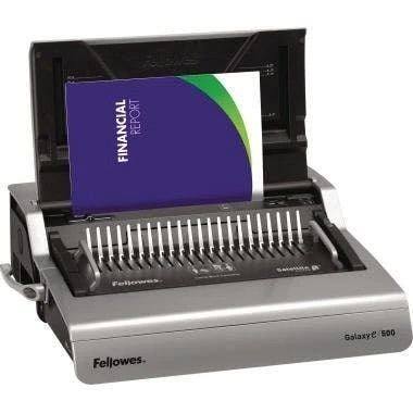 Galaxy-E 500 ist ein schickes elektrisches Plastikbindegerät für die häufige Verwendung im Büro und verfügt über die einzigartige herausnehmbare Bindeplattform Satellite System, die das gleichzeitige Stanzen und Binden durch mehrere Nutzer ermöglicht. Galaxy-E 500 verfügt über eine Stanzkopfauswahl für A4 und A5 Format und einen einstellbaren Rückanschlag zum Binden dickerer Dokumente. Das große, nach vorne zu öffnende Aufbewahrungsfach mit patentierter Binderücken-Messfunktion ermöglicht die einfache Auswahl des passenden Binderückens. Das Stanzrestefach öffnet sich automatisch wenn es geleert werden muss. · Tiefe: 446 mm · Maße: 49 x 15,2 x 44,6 cm (B x H x T) · max. Anzahl der Blätter je Bindearbeitsgang mit Plastikrücke: 500 Bl. · max. Anzahl der Blätter je Lochungsarbeitsgang: 28 Bl. · Verwendung für Papierformat: DIN A4 · max. Dicke des Stapels je Lochungsarbeitsgang: 28 mm · Rückenbreite: 50 mm mm · Masse (Gewicht): 13,06 kg · Ausführung des Papieranschlages: automatisch · max. Durchmesser des Binderückens: 50 mm · Anzahl der Stanzlöcher: 21 Stanzlöcher · Gehäusefarbe: silber · · Farbe: silber · Bindematerial: Kunststoff · Ausführung der Lieferzusammenstellung: inkl. Starter Kit (20 Dokumente) · Art der Stanzung: elektrisch · Höhe: 152 mm · Breite: 490 mm