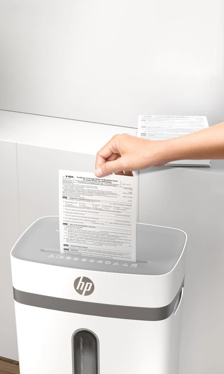 Der kompakte HP OneShred 12CC vernichtet Ihre sensiblen Unterlagen im Cross Cut in 4 mm x 35 mm kleine Partikel und gehört in jedes Home-Office. Der zuverlässige Papier-Shredder glänzt mit der hohen Sicherheitsstufe P-4 und erfüllt somit die Anforderungen der Datenschutz-Grundverordnung zur Vernichtung personenbezogener Dokumente. Mit einer Schnittgeschwindigkeit von 1,8 Meter pro Minute zerkleinert der moderne Aktenvernichter zügig bis zu 12 Blätter gleichzeitig im Partikelschnitt. Haben Sie versehentlich mehr als 12 Blätter zugeführt, wird das Papier dank der Auto-Reverse-Funktion automatisch wieder zurückgegeben, um einem Papierstau entgegenzuwirken. Das mühsame Entfernen von Heft- und Büroklammern vor dem Shredder-Vorgang entfällt, da sie dem HP OneShred 12CC ebenso wenige Schwierigkeiten bereiten wie das Zerkleinern von Kreditkarten.