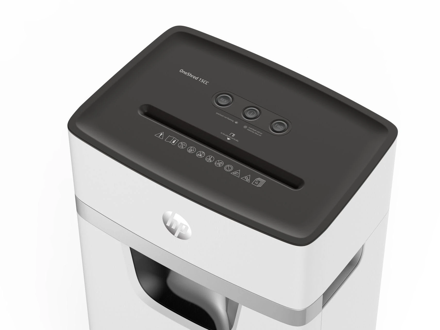 Der moderne HP OneShred 15CC ist hervorragend für kleine Büroumgebungen geeignet und dennoch so kompakt, dass er an jeden Schreibtisch passt. Der Shredder mit einer Schnittleistung von 15 DIN A4-Blätter kommt mit der hohen Sicherheitsstufe P-4 angerollt und erfüllt alle Anforderung einer DSGVO-konformen Aktenvernichtung. Im Partikelschnitt werden Ihre personenbezogenen Unterlagen wie Gehaltsabrechnungen oder Steuerunterlagen in 4 mm x 35 mm kleine Schnipsel zerkleinert. Nach einem Schredder-Vorgang von zehn Minuten benötigt der Aktenvernichter eine Abkühlzeit, bevor er wieder mit seiner Schnittgeschwindigkeit von sportlichen 1,8 Metern pro Minute einsatzbereit ist. Dank der Anti-Papierstau-Technologie wird das Papier automatisch wieder zurückgegeben, wenn Sie versehentlich mehr als 15 Blätter zugeführt haben.