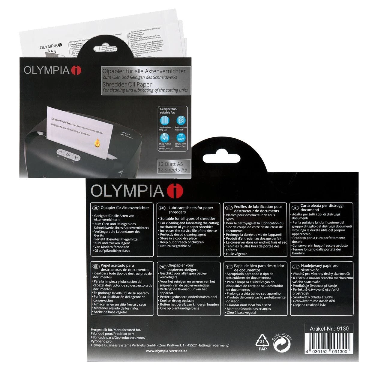 - Ölpapier: Zum Reinigen und Schmieren des Schneidwerkes für alle Arten von Aktenvernichtern 12 Blatt Ölpapier, Größe A5