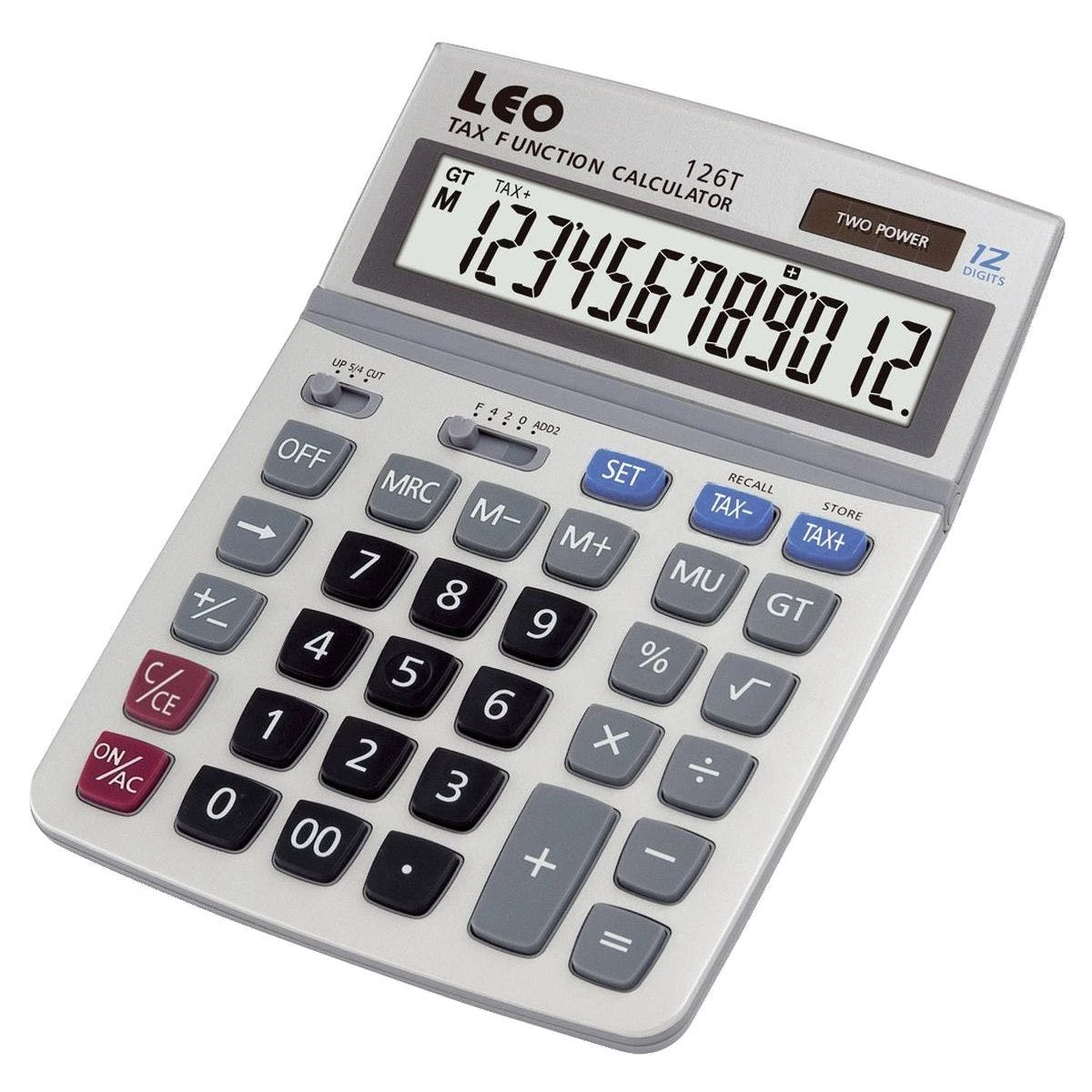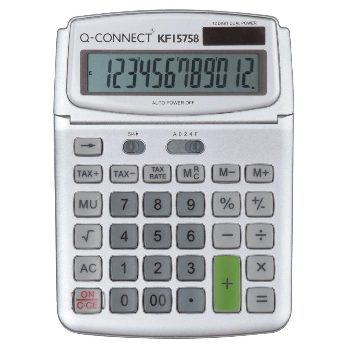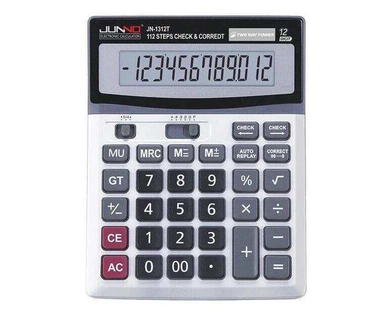 Verstellbares LC-Display. Mehrwertsteuerkalkulation, Bruttomargenfunktion, Quadratwurzelfunktion, Rückschritttaste, GT-(Endsumme) Funktion, Doppelnulltaste, Auf- und Abrunden, 5/4, Nachkommastellen, Tausender- Unterteilung. Solar- und Batteriebetrieb.Größe BxHxT: 140 x 23,5 x 195 mm.