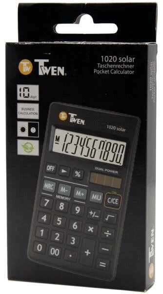 Attraktiver Taschenrechner mit großer 8-stelliger Anzeige, Nachkommastellen, Steuerberechnungsfunktion und Twin-Power. Automatische Ausschaltung, Plastiktasten und 4-Tasten Speicher. Maße BxTxH: 71 x 116 x 17 mm.