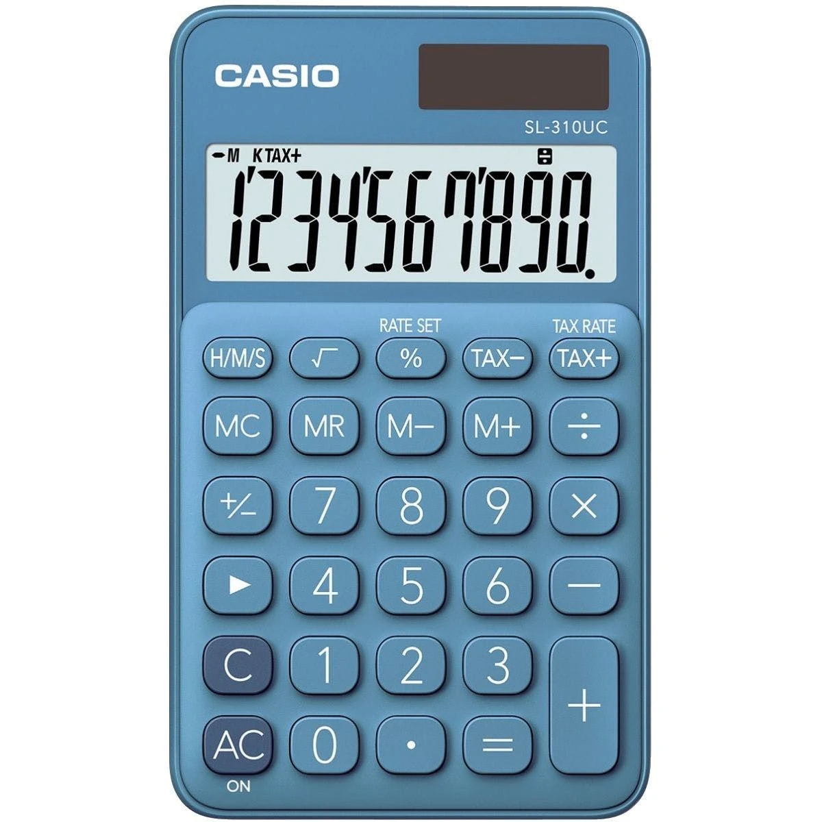 Null Taschenrechner SL-310 – Solar-/Batteriebetrieb, 10stellig, LC-Display, Blau