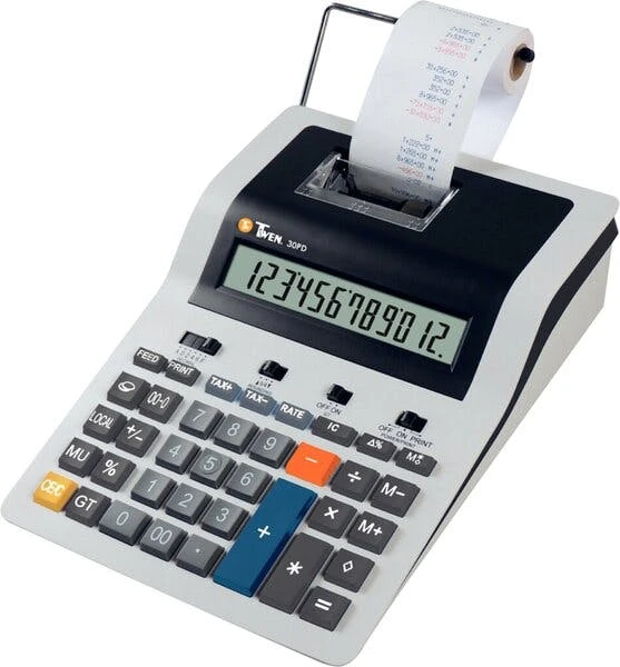 Tischrechner 110 PD, grau, 12-stellig, 1,4 Zeilen/Sekunde, TAX, Cost/ Sell/ Margin, Rundungsfunktion, MarkUp, Prozent- rechnung, 00-Taste, Nichtrechentaste, Zeitfunktionen, Speicher, Farbrolle: Gr. 744 blau, Papierrolle: 57 mm, Batteriebetrieb, Netzteil inklusive