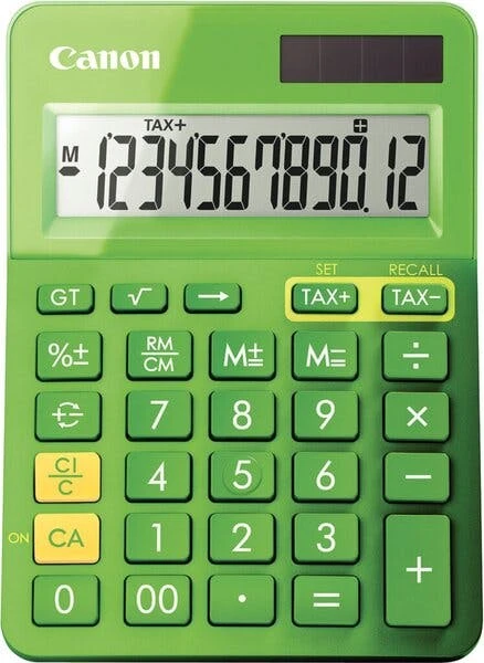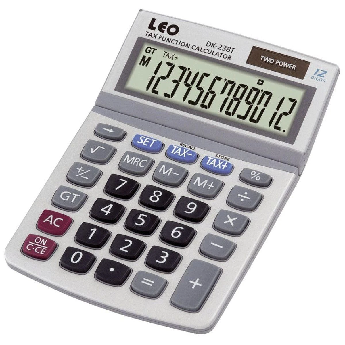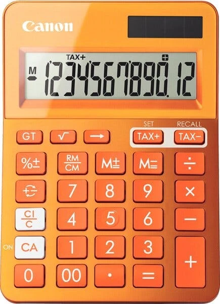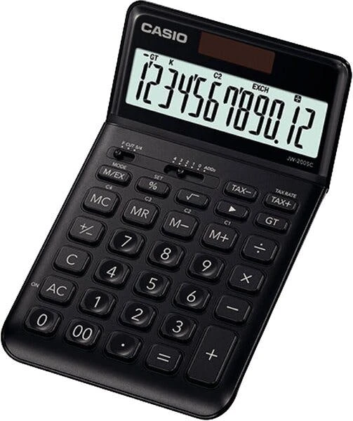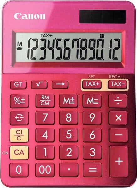Großes, 12-stelliges bewegliches LCD-Display, große Tasten, Mehrwertsteuerkalkulation, Quadratwurzelfunktion, Rückschritttaste, tausender Unterteilung, Batterie- und Solarbetrieb. Maße BxHxT: 105 x 40 x 180 mm.
