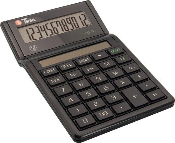 Tischrechner Eco 10, Solarbetrieb, schwarz, 10-stellig, vier Grund- rechenarten, Prozent- und Wurzel- rechnungen, 4-Tasten-Speicher, Vor- zeichenwechsel- und Korrekturtaste, Blauer-Engel-Siegel, Gehäuse aus 70% Recyclingmaterial, Maße: 93 x 15 x 22 mm
