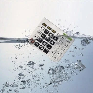 Taschenrechner mit großem LC-Display. Wasser- und staubgeschützt (Schutzgrad IP 54) und mit einem abnehmbaren und abwaschbaren Tastenfeld eignet er sich bestens für den schonungslosen Einsatz auch abseits des Büros. Neben den Standard-Funktionen beherrscht dieser Tischrechner auch Prozentrechnung (inklusive Handelsspannenberechnung), Profitberechnungen (Cost, Sell, Margin) und MwSt.-Berechnung. Außerdem besitzt er einen 3-Tasten-Speicher und einen Grand Total-Speicher, eine Tausender-Unterteilung, Vorzeichenwechsel, eine Doppelnull-Taste sowie eine Backspace-Taste. Solar- und Batteriebetrieb. Batterie: 1 x CR2032. Größe BxHxT: 145,5 x 36 x 195 mm.